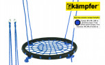 Качели-гнездо Kampfer выполнены из металлической рамы диаметром 100 сантиметров, с дополнительной защитной оплеткой ее бортиков, обтянутых прочным синтетическим канатом выдерживающим нагрузку 100 кг. Плетеное синтетическое сидение качелей удобное и практичное, не собирает грязь и воду, при сильных загрязнениях его можно протереть.