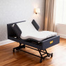 Кровать для лежачих больных с матрасом имеет электрический привод, благодаря которому можно изменять положение ее секций в зависимости от потребностей больного. Модель имеет четыре секции и пять функций. Положение секций можно легко регулировать, фиксируя в нужном положении. Максимально возможная нагрузка на кровать составляет 200 килограмм, ее собственный вес – 120 кг.